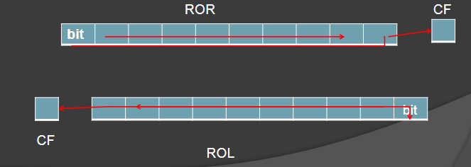 • ROL β€” Left most bit move to the right most bit + into the CF flag